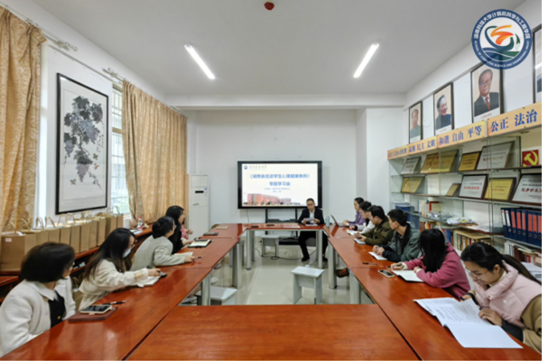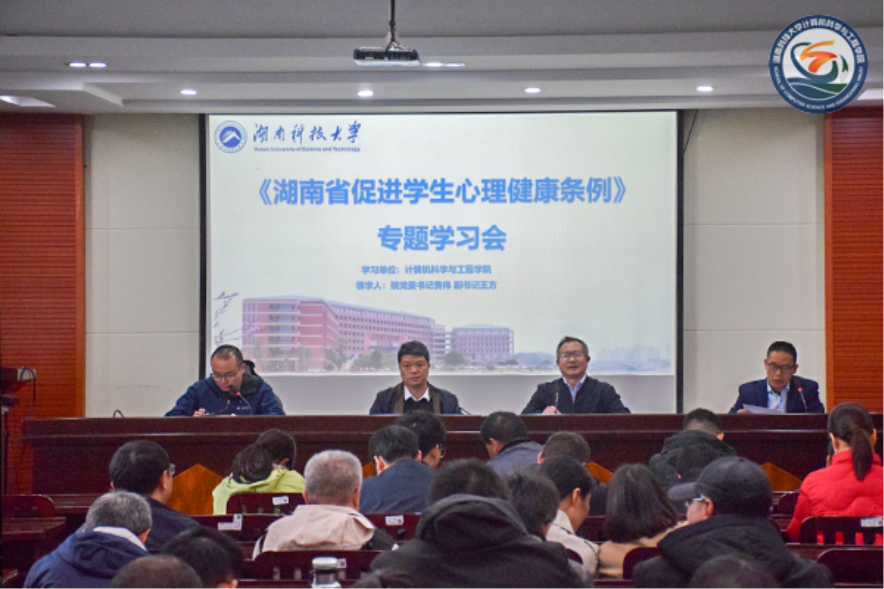 全院大会上,我院党委高度重视,对《湖南省促进学生心理健康条例》、《湖南科技大学学生心理健康教育实施办法》及《湖南科技大学学生心理危机预警与干预实施办法》三个重要文件进行了专题研讨。会议明确指出,学生心理健康是高校安全稳定工作的基石,也是“三全育人”工作的关键环节。全院上下必须提高政治站位,为学生的心理健康保驾护航。