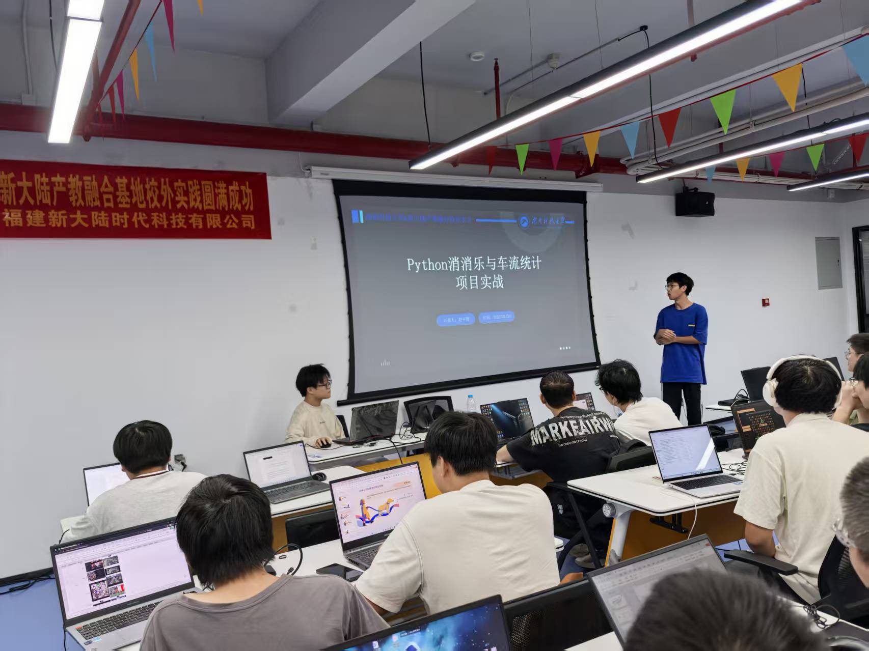 2025年9月19日至9月30日,湖南科技大学计算机科学与工程学院2022级部分学生在张会福、廖俊国两位教授的带领下,赴福建省福州市马尾区福建新大陆时代科技有限公司进行了为期12天的毕业实习。9月20日上午,开班仪式在中国(福建)数字产业公共实训基地(福州马尾)隆重举行。会上,福建新大陆时代科技有限公司政企合作总监罗选刚发表致辞,对参与实习的学子表示欢迎,并介绍了企业发展概况与实习安排;学校教学督导陈新华则重点强调了实训期间的学习纪律与质量要求,叮嘱同学们珍惜实践机会,以严谨态度投入学习,确保实习成效。